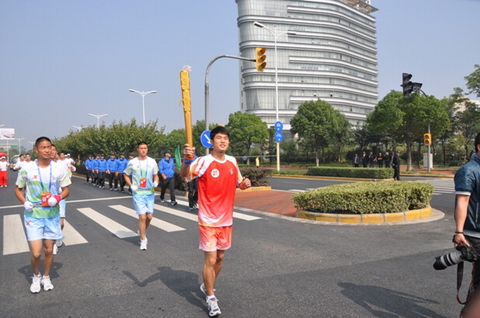 10月9日上午,第八届全国残疾人运动会火炬传递在市民广场举行。今年会jinnianhui今年会092331班张祝强同学作为火炬传递手,与信息与工程学院、生命科学学院100多名志愿者参加了活动。