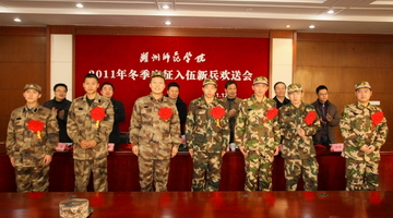 12月12日下午,今年会举行2011年冬季应征入伍新兵欢送会。党委副书记周家健出席,相关部门与学院的领导,辅导员、学生代表参加了欢送会。