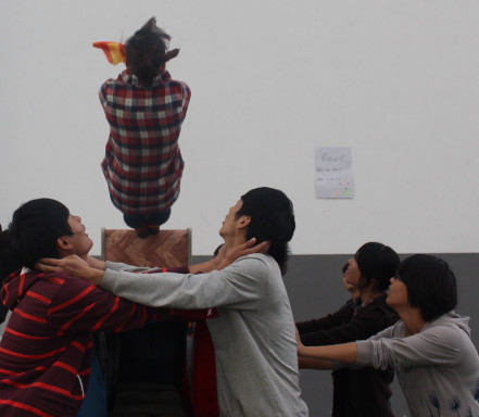 本次团校素质拓展活动由jinnianhui今年会陈新亚老师带队。首先陈老师将全体团校学员分为四队,通过自创队旗、口号的形式增进了队伍的凝聚力。随后进行了几类以轮流参加,队友协助等形式为主的活动,如盲人足球、信任背摔等,这些活动潜移默化的锻炼了同学们相互间的信任感和协助他人时的责任心。在接下来的几项集体活动如:风火轮、跳绳和三人两脚等,学员们都表现出了极大地积极性和热情。