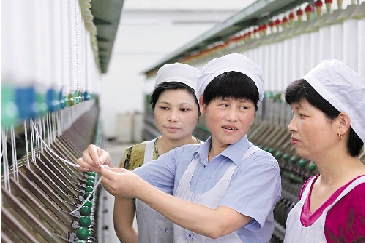 “一条条粗纱经过机器加工后,就变成一根根织布用的细纱,这是纺织行业中最难做的工种之一。”蔡芳英在隆隆的机器声中,扯大嗓门对记者说,如果线头一旦断了,要接得结实而美观相当困难,直接影响产品质量。