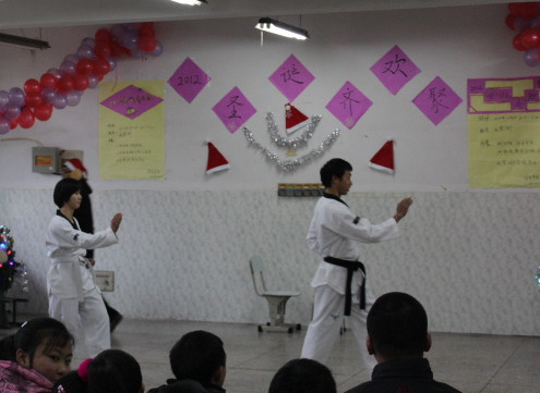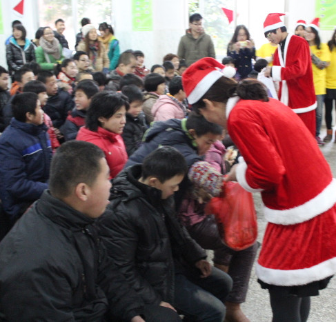 2012年12月26日,我们与湖职院的志愿者共同合作,给衣裳街地80多名小朋友带去了一场圣诞联谊晚会,我们带去了好听的歌曲、动感的健美操、跆拳道、愉快的小游戏,使小朋友们在这个寒冷的冬天不再寒冷。