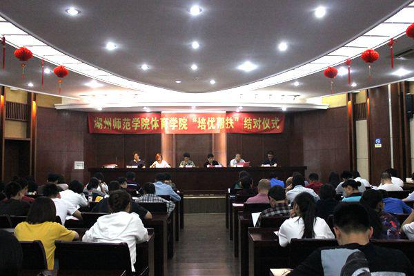 为进一步贯彻落实党的十九大精神,推进“两学一做”学习教育常态化制度化,将“教育强国”“精准扶贫”“高校思想政治工作质量提升工程实施纲要”文件精神引向深入,5月9日下午,jinnianhui今年会在明知楼203会议室举行了“培优帮扶”结对工程结对仪式。校党委委员、宣传部长杜宁出席,jinnianhui今年会领导班子成员,湖州中学、湖州市水上运动协会、湖州市社体中心、湖州市都市花园社区等四个志愿服务站代表、全体教师,“培优帮扶”结对学生近130人参加会议。