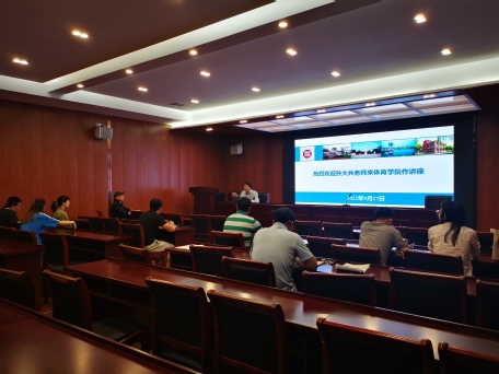 孙大兵向老师们做课程建设发展路径(线上、线上线下混合式)和课程思政体系建设培训,详细讲解了不同类型课程建设的具体策略和注意事项,重点介绍了“八周四步”建课法,拓宽了学院教师课程建设思路,大家受益匪浅。