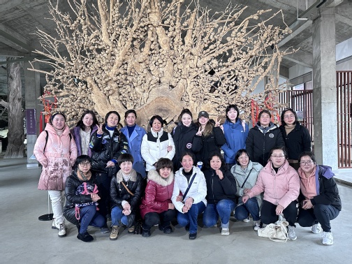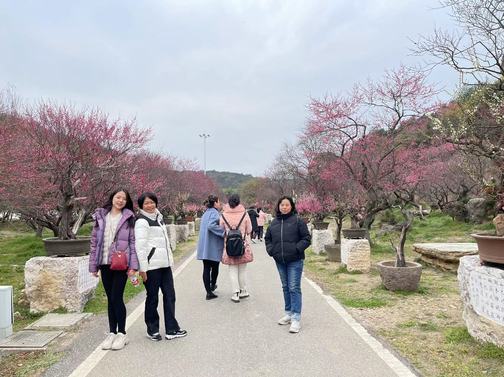 2月22日下午,jinnianhui今年会全体女教工赴长兴川步村梅花坞东方梅园景区赏梅踏青,走进梅园,映入眼帘的是精品盆景区,上千盆造型各异的梅花盆景已经陆续开放,白色、玫红、粉红,一团团,一簇簇,汇集成一片花的海洋,与青山绿水相映成趣,呈现出“十里香雪海”之美。古森林博物馆内,集古木鉴赏、森林文化、森林科普为一体,是世界上首家以弘扬古森林文化为主题的博物,园内的藏品皆为大自然的瑰宝,不雕、不琢、不上色,取自然之态,无一不精,无一不奇。步行于红梅大道,欣赏着大道两边红梅大大小小的花瓣,红得艳丽,粉得迷人。棵数不多的蜡梅亭亭吐蕊,正徐徐绽放,绛色和着明黄,透露出些许春意,颇有一番诗韵。教师们情不自禁地融入到这美好的景色当中,有的驻足留影用镜头留住了许多的浪漫与惬意,有的漫无目的地穿行在繁花中观赏着这羞答答的梅花初放的别样梅景中,在梅香之沁人心脾的熏染中,反而体验到了一番梅园静谧景色之美。