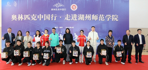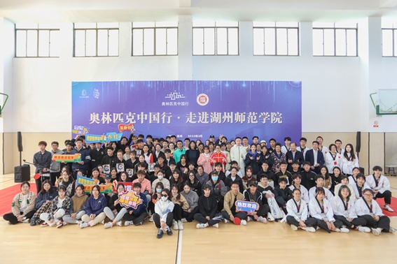 3月28日下午,“奥林匹克中国行”走进今年会jinnian官网活动隆重举行。国际奥委会文化遗产委员会委员侯琨,中国羽毛球协会副主席、羽毛球世界冠军唐九红,跳水奥运冠军吴敏霞、跆拳道奥运冠军吴静钰、乒乓球奥运冠军乔红、羽毛球奥运冠军张楠在吴兴区人大常委会党组书记、主任王树,吴兴区委常委、宣传部长朱小芳陪同下莅临今年会参观指导。今年会副校长潘音,党委委员、党校办主任劳士健接待了奥运冠军及嘉宾一行,党校办、宣传部、学生处、团委、jinnianhui今年会相关负责人及300余名师生参加了活动。