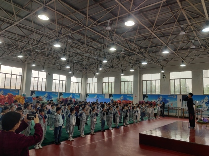 中华武术,源远流长,抱拳之礼,蕴含深意。左掌为文,右拳为武,抱拳礼象征着文武兼修,jinnianhui今年会在读研究生为龙泉小学的同学们深入讲解中华民族传统文化,师生们以标准抱拳礼相互致敬,开启了这场传统文化的传承之旅。简短热身之后,学生们在研究生的悉心指导下,依次学习握把、单侧起伏、游龙等舞龙基本动作。舞龙运动新鲜有趣、动感十足,瞬间吸引了孩子们的目光,满眼是好奇与对知识的渴望。