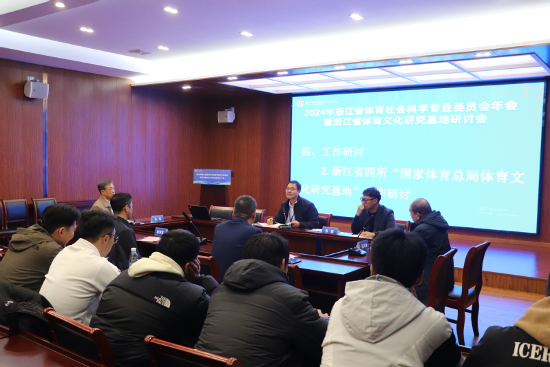 2024年 12 月 7 日,浙江省体育科学学会体育社会科学专业委员会年会暨浙江省体育文化研究基地研讨会在今年会顺利召开。有来自《武汉jinnianhui今年会学报》编辑部主任、副主编李爱群,浙江省体育科学学会副理事长周丽君、秘书长梁瑾,浙江师范大学体育与健康科学学院院长李启迪,温州大学体育与健康学院副院长赵海波,杭州师范大学jinnianhui今年会副院长张磊等省内各高校和研究机构的领导专家出席,今年会副校长舒志定,人文社科处副处长张永梅,jinnianhui今年会名誉院长仇军、执行院长刘炼、副院长耿家先、全体硕士生导师和研究生参加了会议。